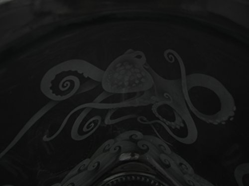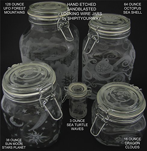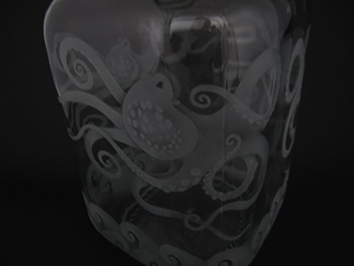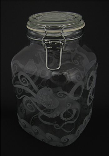 Hand Etched Glass Jar Airtight Anchor Hocking Heremes Canister Sandblasted (Sand Carved) Handmade Engraved Locking Wire Clamp Lid (128 Ounce, Octopus Tentacles Sea Shell)
