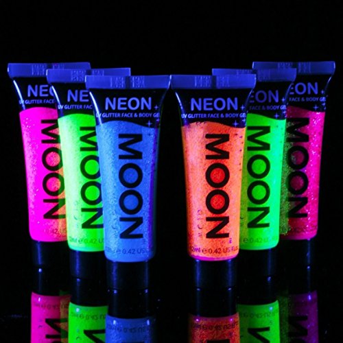 Moon Glow - Blacklight UV Glitter Face & Body Gel - 0.42oz Set of 6 - Blacklight Face Paint - glows brightly under Blacklight