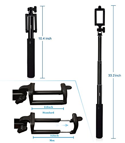 1.97-3.15 inshes extention of the mount fits different size of smartphones. Easy to use with the built-in bluetooth remote, just pair your phone via the bluetooth and start snapping photos.