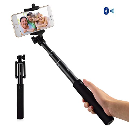Bluetooth Selfie Stick - iXCC Aluminum Wireless Selfiestick [Built-in Remote Shutter, Adjustable Phone Holder] for iPhone, Samsung, Android and More