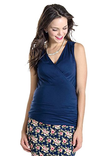 The Eva Top is a functional classic crossover top with easy nursing access. Back ruched detailing is not only stylized but also serves to camouflage back and side bumps. Style is designed to wear before, during and after pregnancy. Sizing (order pre-pregnancy size) XS=2-4 S=4-6 M=8-10 L=10-12 XL=12-14 Rayon/Spandex Machine or Hand wash cold; Lay flat to dry Made in USAFeature