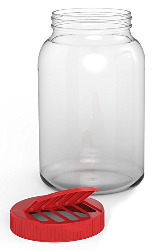 KombuJars 1 Gallon Glass Jar Wide Mouth 128oz Flip-top Closeable POUR Plastic VENTING Lid Cap, Wide Mouth Jars, Brewing Fermenting Kombucha Storage Bottles Kefir Canning, Clear, Multi-use, Pouring
