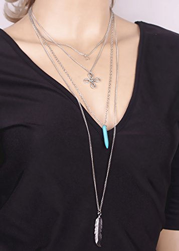 LittleB Multilayer Alloy Choker Turquoise leaves Necklace for women.