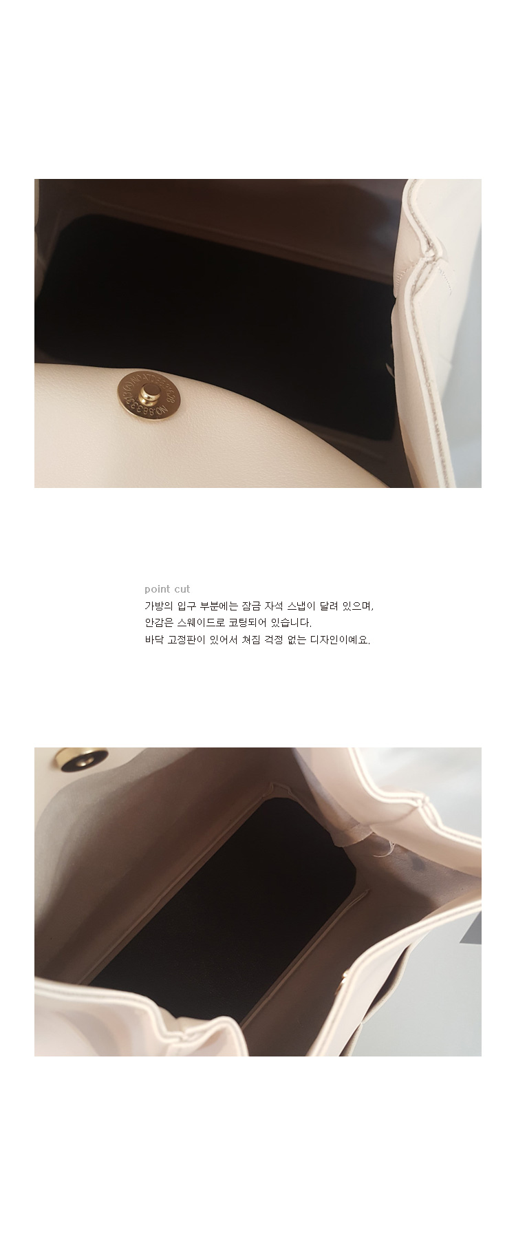 バッグの入口部分とポケットの中央部分にVの表示があります。