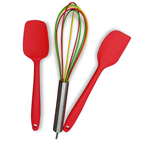 - Inclues 3 Muffin pans, Whisk, Scraper, Spatula, Piping Bag w/ 5 Nozzles, Measuring Cups, Measuring Spoons, 6 Jumbo Silicone Liners, 12 Regular Silicone Liners, and Bag