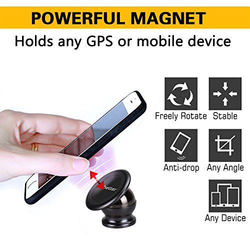 Magnetic Phone Holder,Sobetter Magnetic Car Mount Holder for Mini Tablets iPhone 6/6S Plus 7/7 Plus Galaxy S5 S6 S7 Edge Note iPad mini Nexus Pad (Black)