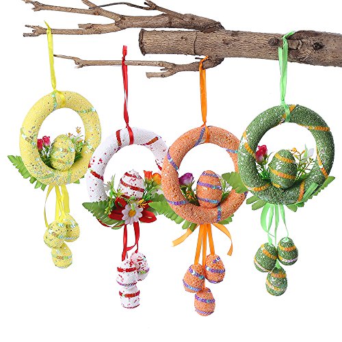 DECORA 4 Pieces Easter Foam Wreath with Eggs Decoration for Easter party decoration