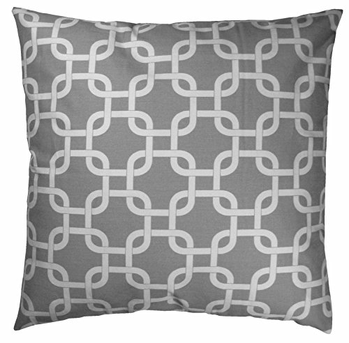 JinStyles Trellis Chain Cotton Canvas Decorative Throw Pillow Cover (White and Gray, 16 x 16)