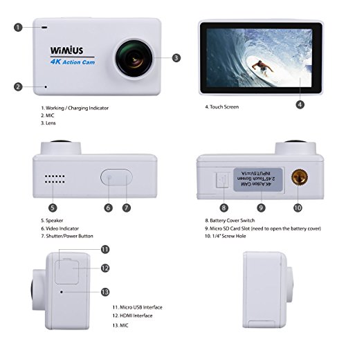 【Touch Screen + Wifi Remote】The L3 Sports Camera Equipped with 2.45''touch screen display for easy camera control!You can touch the screen inside of waterproof case,but you need to install the touch screen back cover(included in accessories)to original waterproof case.Built-in Wi-Fi,support APP remote control(App named''WIMIUS CAM Pro''),convenient to control and use.