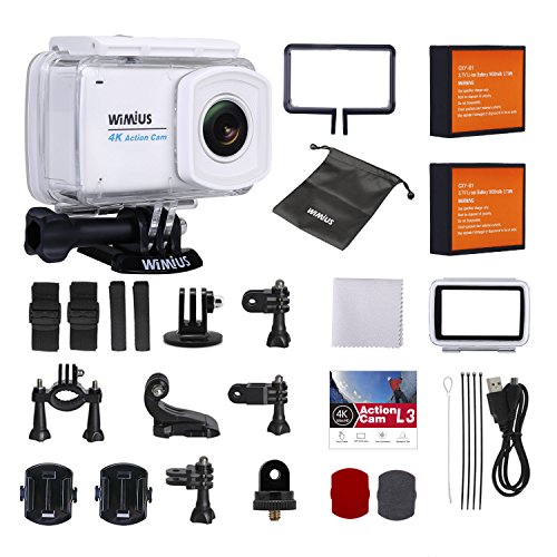 4K Action Camera Wifi WiMiUS L3 16MP 2.45'' LCD Touch Screen Waterproof Sports Camera Sony Sensor IMX078 HD Camcorder With 2pcs Batteries and 20 Accessories Kits (White)