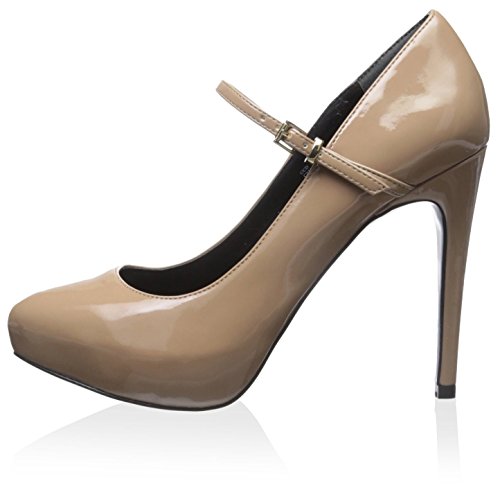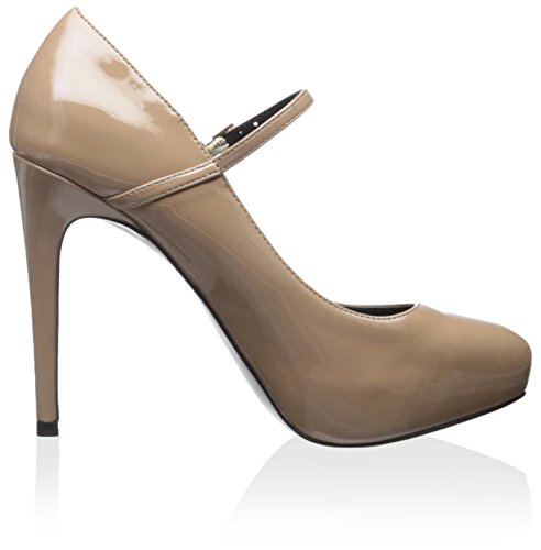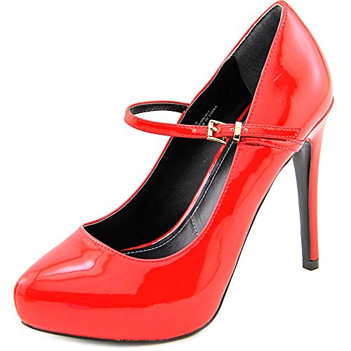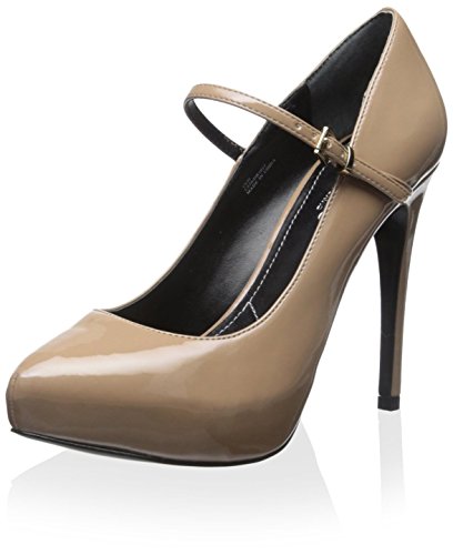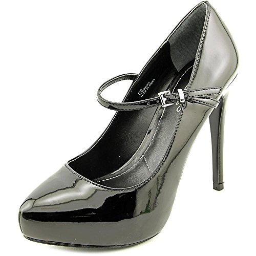 Adjustable maryjane strap with buckle closure. Almond toe. Man-made lining. Lightly padded footbed. Wrapped platform and heel. Man-made sole. Imported.