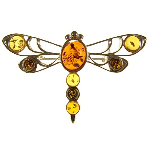 -. Title : BALTIC AMBER AND STERLING SILVER 925 DESIGNER MULTI-COLOURED DRAGONFLY BROOCH PIN JEWELLERY JEWELRY