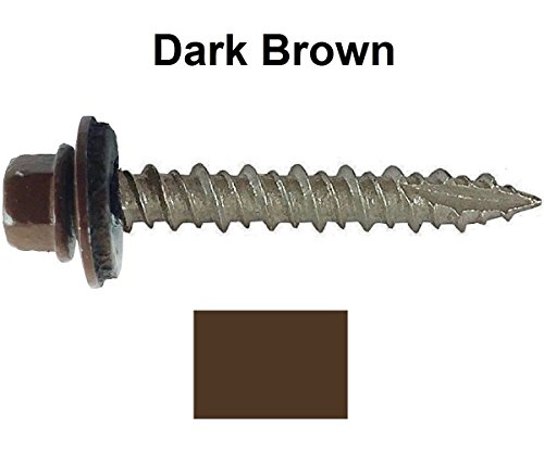 Metal ROOFING SCREWS: (250) Screws x 1" DARK BROWN Hex Washer Head Sheet Metal Roof Screw. Self starting/self tapping metal to wood, sheet metal roofing siding screws ~ EPDM washer. Metal Roof screw with colored head ~For corrugated roofing