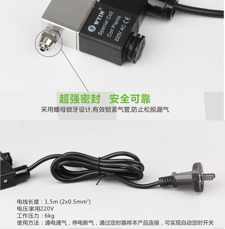 For example, "worry-free CO2" generator, only need to install the solenoid valve in the middle of the outlet can be (recommended placed in the fine valve and the refiner between), through the trachea channel direct control of CO2 off, It is recommended to choose high-strength trachea, such as Yabo transparent high-thickness trachea, and can be equipped with high-quality valve