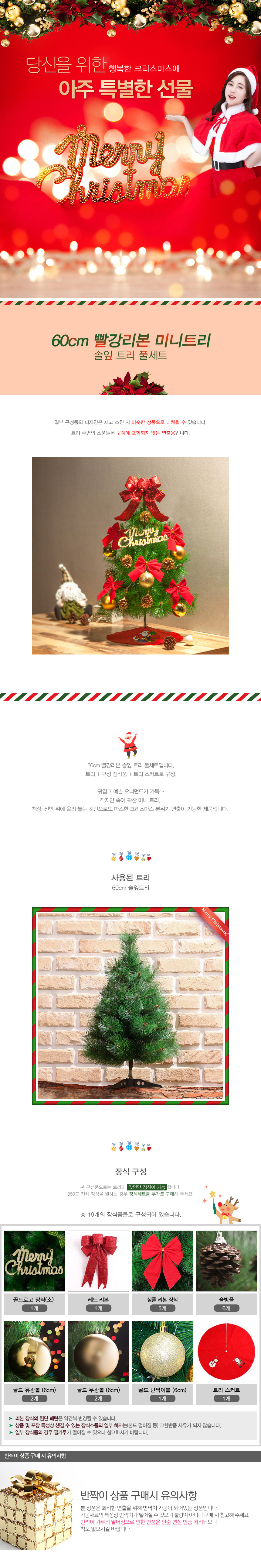 Garend Red Ribbon Pine Tree Full set 1 Christmas decoration Christmas supplies Minimal