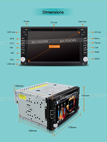 6.2-Inch Double-2 DIN In Dash Car DVD Player Touch screen LCD Monitor with DVD/CD/MP3/MP4/USB/SD/AM/FM/Bluetooth/Stereo/Audio and GPS Navigation