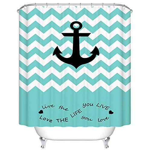 Goodbath Nautical Chevron Pattern Anchor Mildew Resistant Waterproof 100% Polyester Fabric Shower Curtains Liner 66 Inch by 72 Inch, Blue and White (Anchor& Striped)