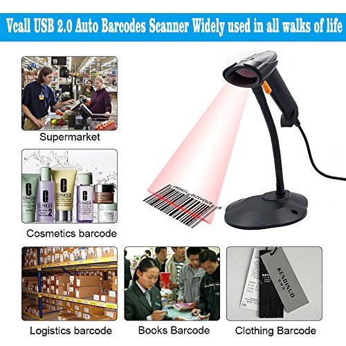 Vcall USB 2.0 Automatic Sensing Scan Wired Laser Barcode Scanner Bar-code Reader with Hands Free Adjustable Stand for POS PC Laptop (Black)