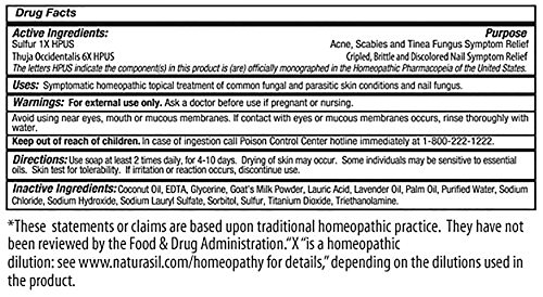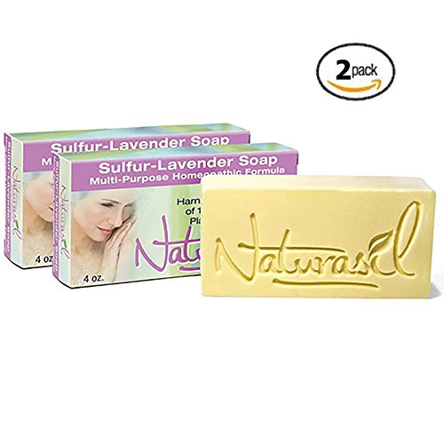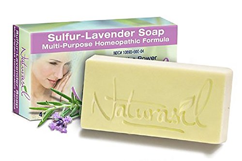 Naturasil Sulfur-Lavender Soap is a homeopathic sulfur soap that can be used to assist many common skin conditions safely and effectively. We use 100% natural lavender from France to make one of the best smelling and widely used sulfur soaps on the market. Naturasil sulfur soap leaves behind a rich lather and generally one bar last a long time. Sulfur soap is commonly used for everything from Acne to Psoriasis. Its a great anti-fungal as well. Our best selling sulfur soap is hand crafted in our Atlanta, GA FDA facilities for over the last 10 years! We guarantee your satifaction of our Naturasil Sulfur Lavender Soap or your money back!Feature