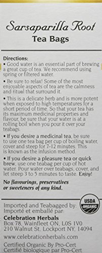 -. Feature : Brought to you by Celebration Herbals / Sarsaparilla / Root / Organic / Size=24 CT