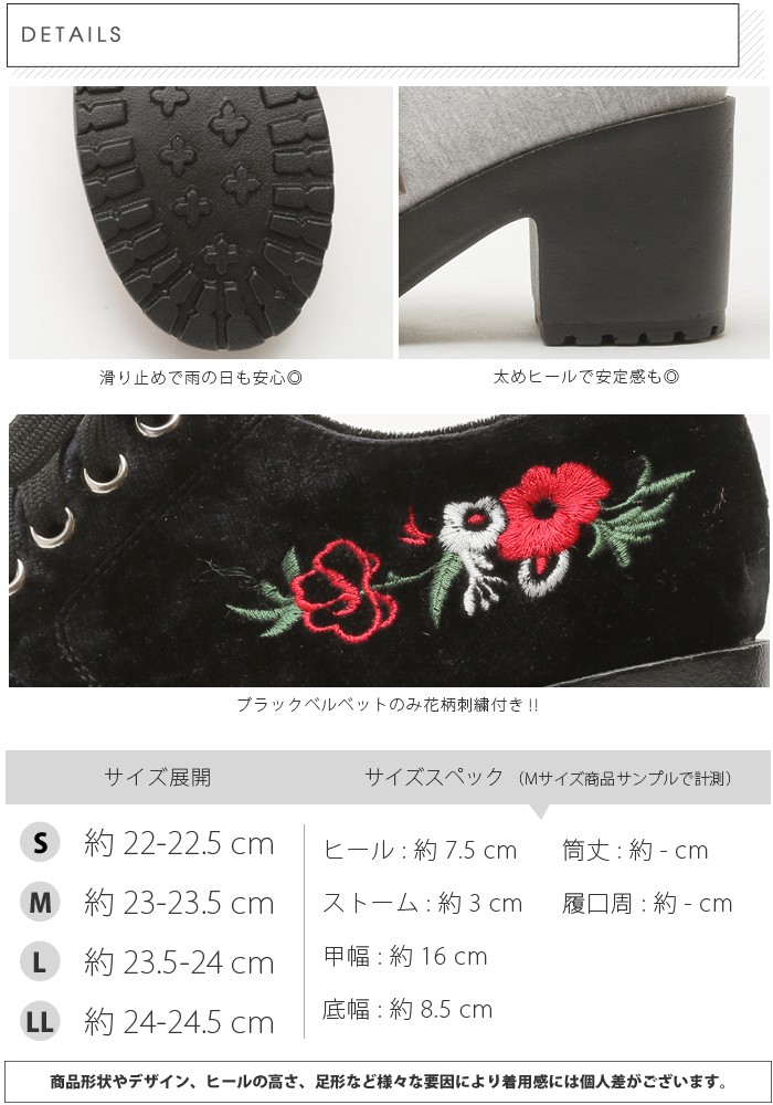 | カラー | 01. ブラックスムース 02. ブラックベルベット 03. ブラックスエード 04. ピンクスエード 05. グレー |