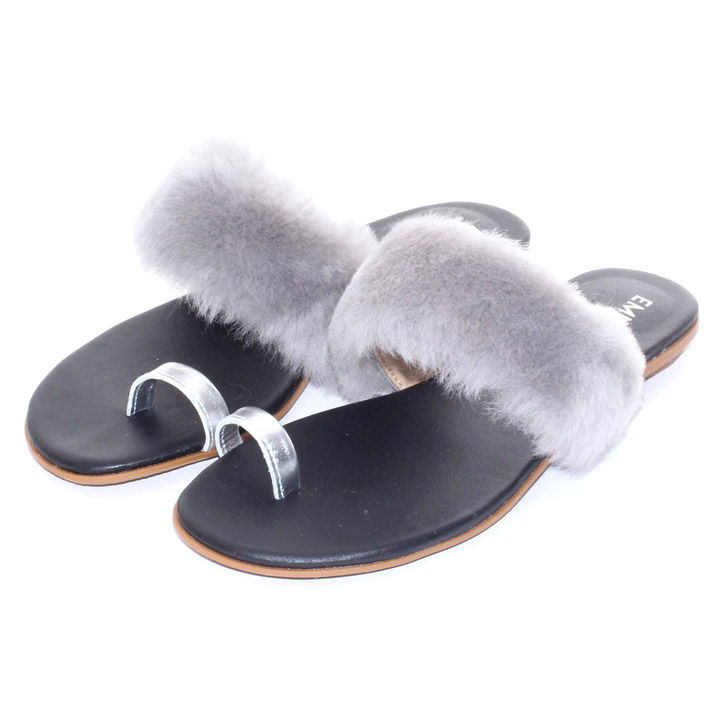 ヌーディーで軽い履き心地のフラットサンダルにボリュームのあるファーをあしらったハイエンドな日本限定サンダルです。安定感のあるフラット&軽量サンダルで親指のシルバーのリング部分も柔らかく快適な履き心地。洗練された上品なモードのアクセントが◎様々なシーンにマッチする今季注目のデザインサンダルです。