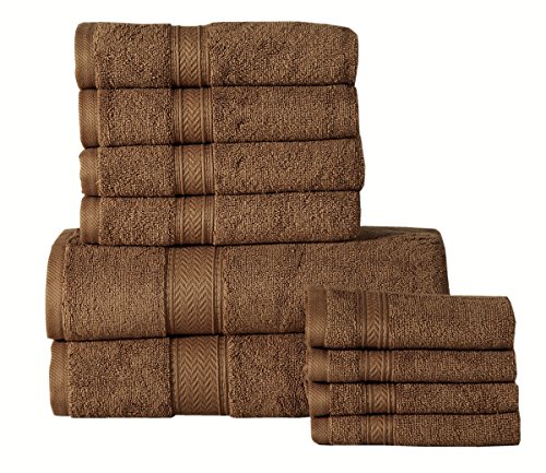 Affinity Home Collection 10 Piece 600 GSM Casa Platino Soft and Luxurious Cotton Towel Set, Mocha