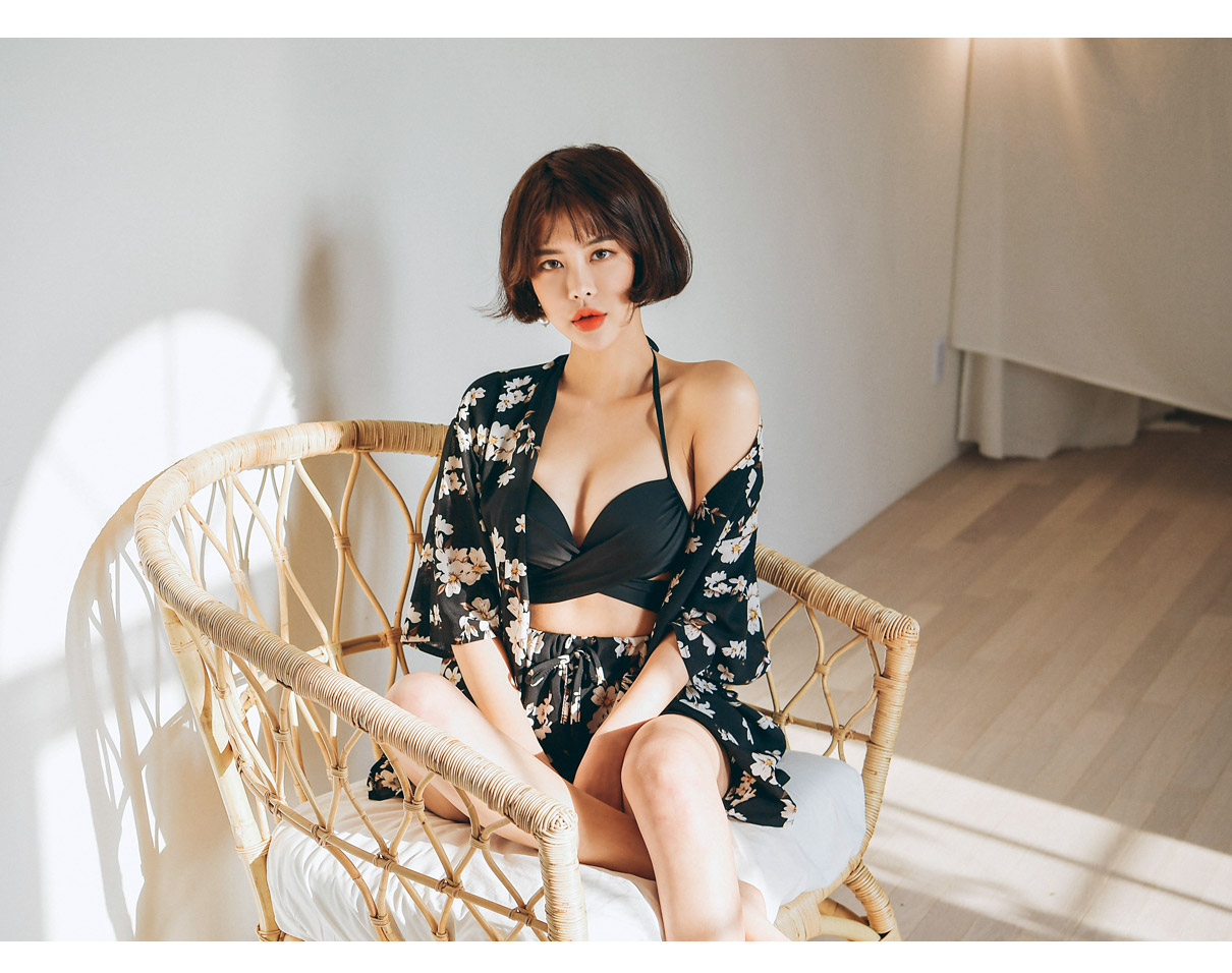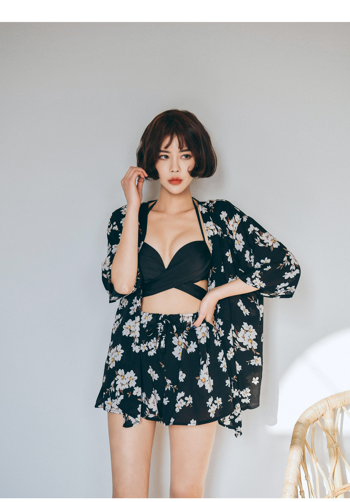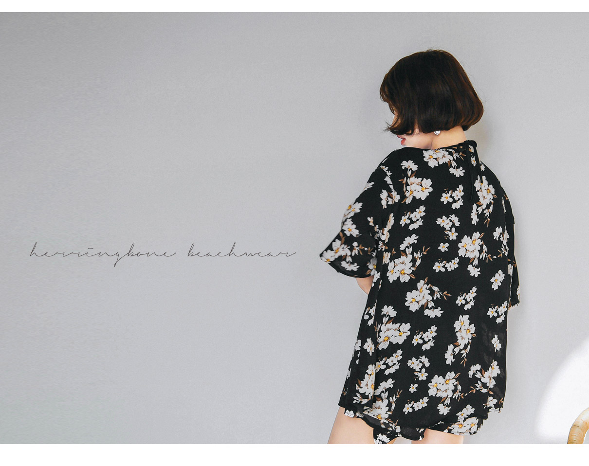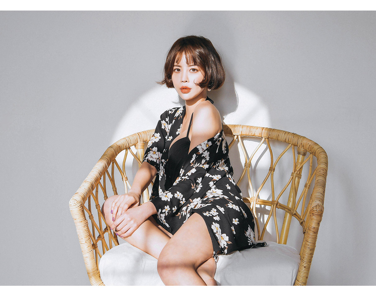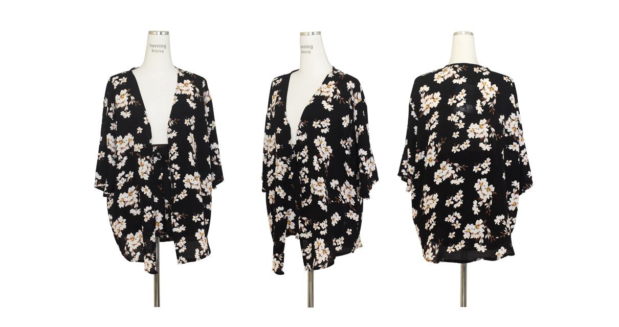 블랙 바탕에 화사한 플라워패턴 조합이 너무 예쁜 로브와 팬츠 SET예요.