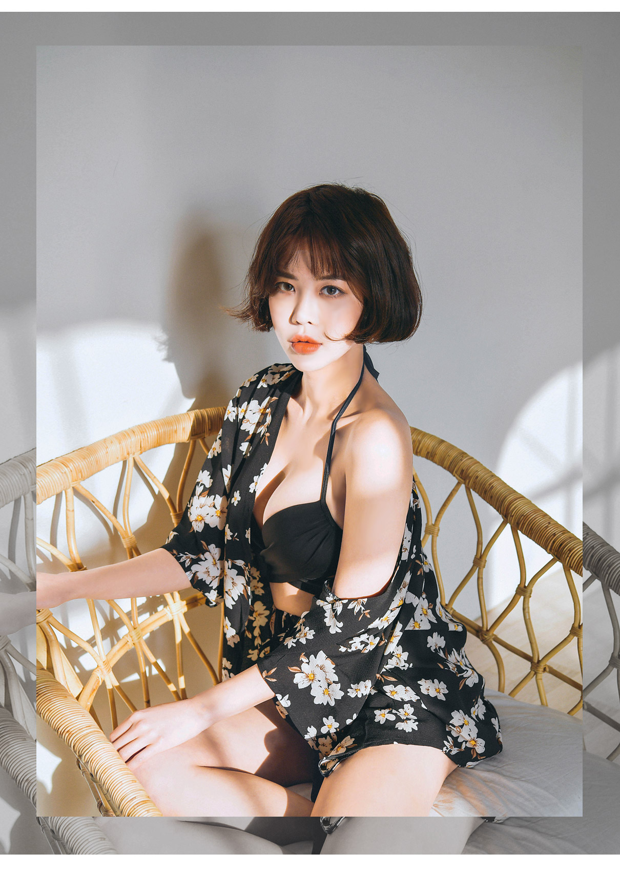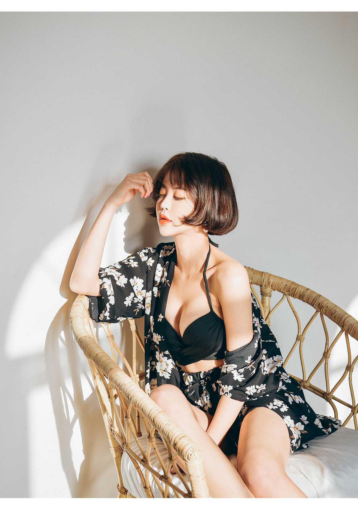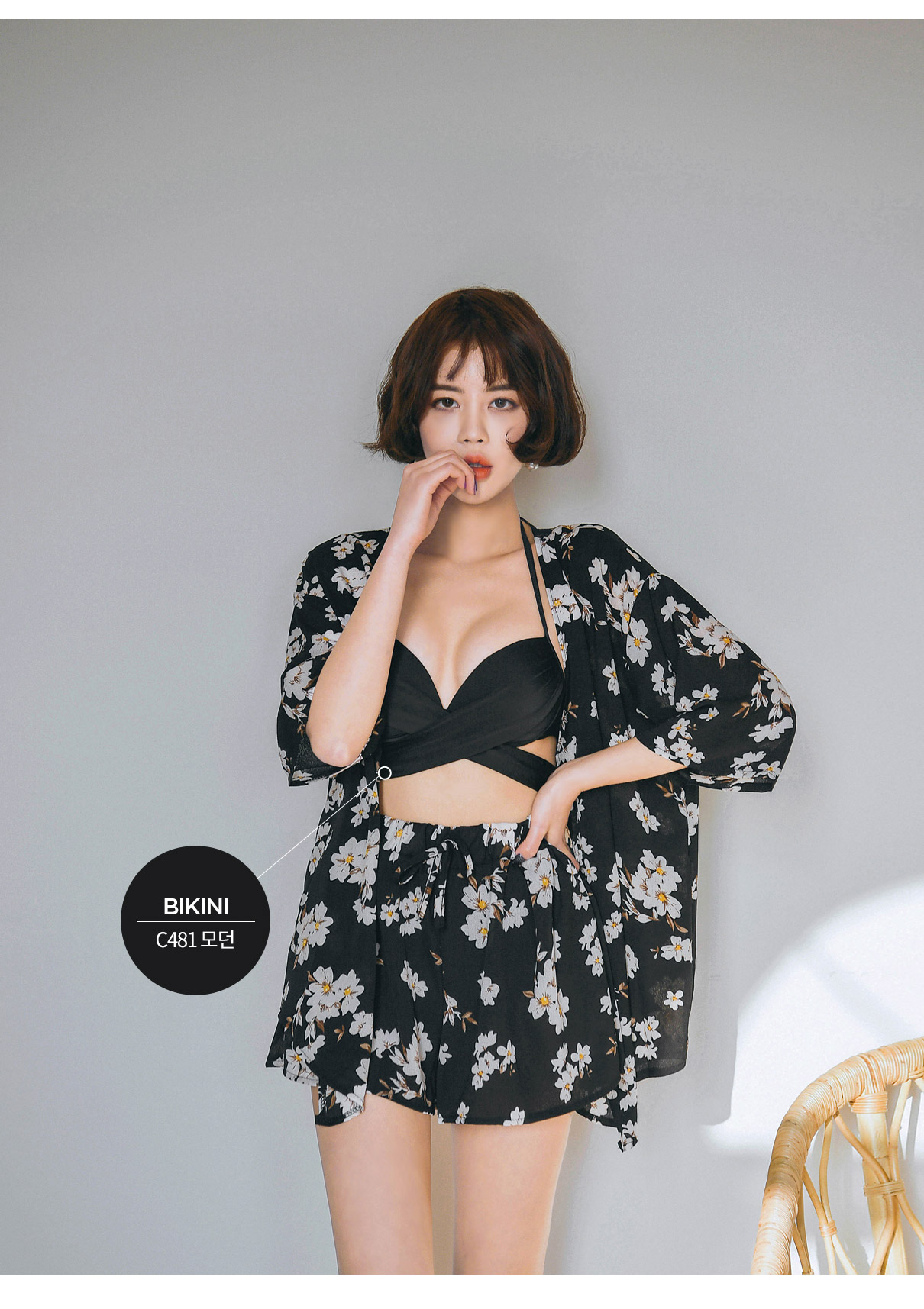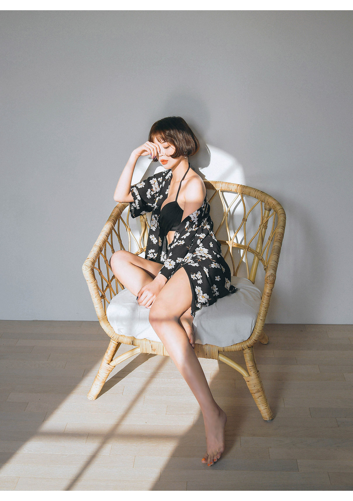 블랙 바탕에 화사한 플라워패턴 조합이 너무 예쁜 로브와 팬츠 SET예요.