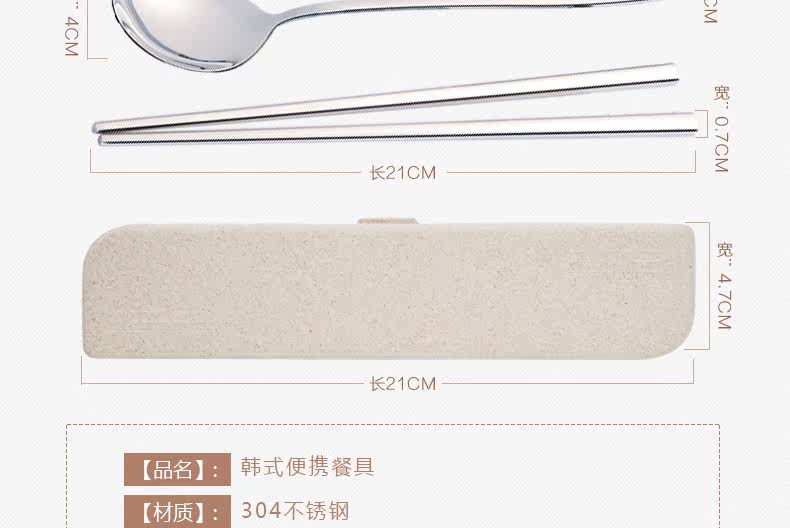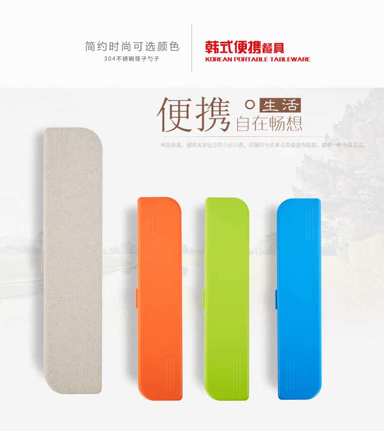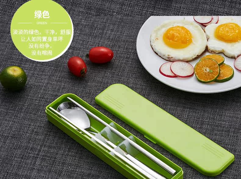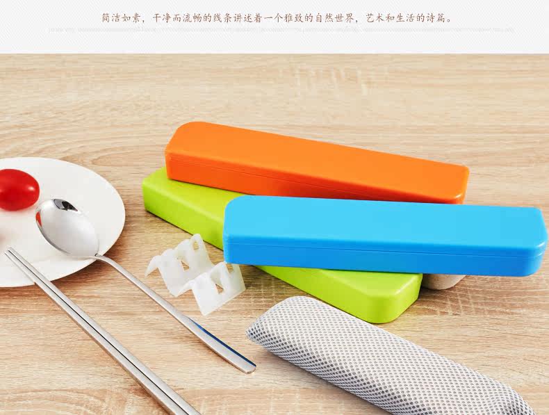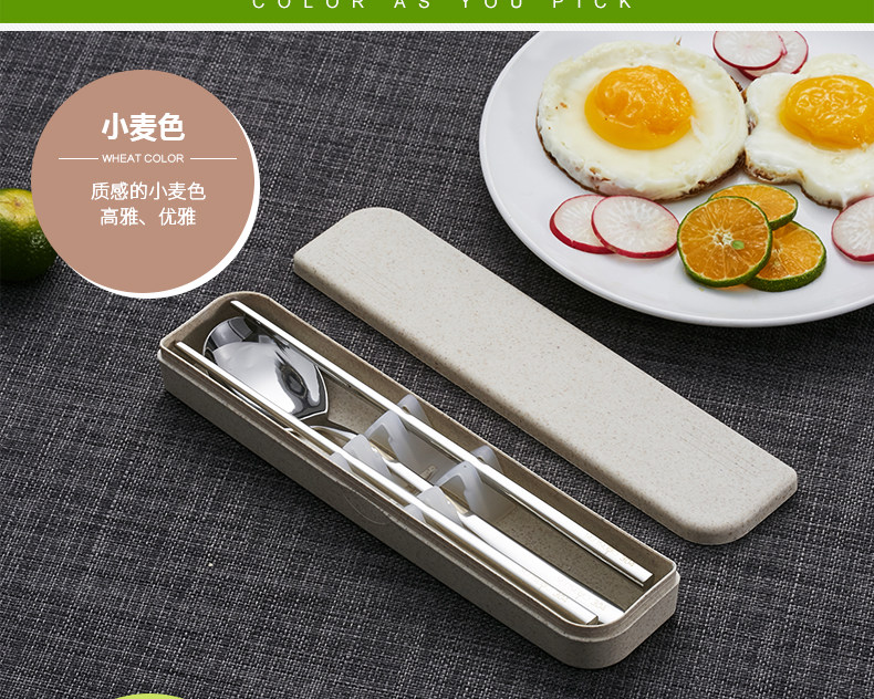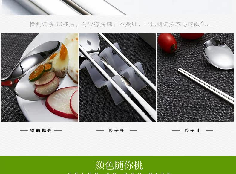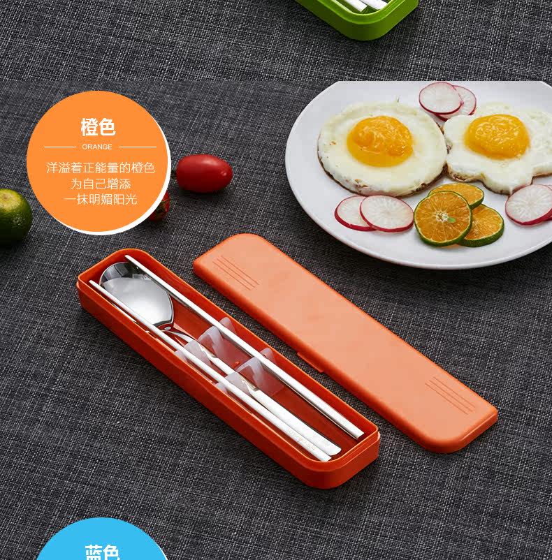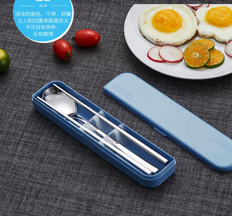 304不锈钢方筷子勺子叉子学生筷勺叉餐具套装旅行便携餐具