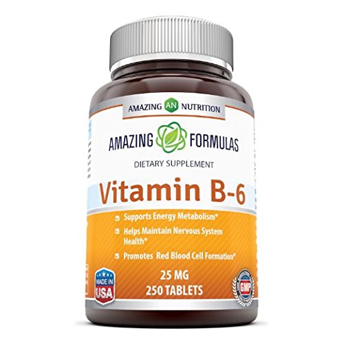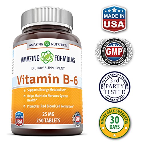 -. Feature : GET MORE B6 VITAMIN IN YOUR DIET Vitamin b6 pyridoxine is commonly used for metabolism support, nervous system health and cell health / ESSENTIAL VITAMIN Vitamin B-6 plays an important role in the production of neurotransmitters- the chemicals that allow the brain and nerve cells to communicate with one another, ensuring that metabolic processes such as fat and protein metabolism run smoothly / OPTIMAL DOSE Every tablet of Amazing Nutrition B6 vitamin supplement contains 25 mg of Vitamin B-6 USP (as Pyridoxine HCI). It is an optimal vitamins B6 dosage. / PREMIUM QUALITY Our vitamin B6,25 mg tablets are manufactured in the USA at a GMP certified facility, making them the best quality and potent B6 vitamins / IDEAL FOR YOUR HEALTHY DIET Amazing Nutrition Vitamin B6 is free of artificial colors, flavors and preservatives making them a healthy addition to your healthy diet