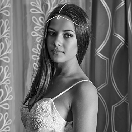 Rhinestone Head Chain - Pendant Headpiece, Jewelry Headband with Chain for Bachelorette Parties, Bridal Showers, Engagement Parties, Silver