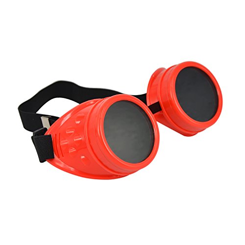Ucspai Cyber Goggles Steampunk Welding Goth Cosplay Vintage Goggles Rustic Red