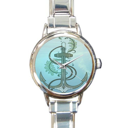-. Title : Christmas Day Gift Classic Anchor Art Round Italian Charm stainless steel Watch