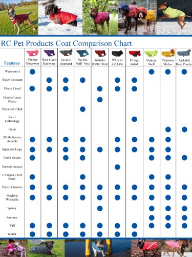 Studio : RC Pet Products Limited Publisher : RC Pet Products Limited Binding : Misc. Product Description Strut your pup in the rc pet products skyline puffy vest. it's fun, fashionable and functional. water repellent rip stop quilted jacket provides excellent warmth on cold windy days and features velcro closures to get the perfect fit for your dog. fully reversible, one coat offers two colorful ways to wear it. additional features include, leash access slit and 3m reflective piping to help nighttime visibility. vest features chest panel coverage for additional warmth and protection. available in a variety of colors and sizes 8 to 30. to measure your dog for size use a soft tailors tape while your dog is standing. girth equals the widest circumference around you're your dog's chest and the length is measured from collar to base of tail. if you dog falls between sizes, choose the larger size for more coverage. size 12 fits a girth of 19-21-Inch and a length of 12-Inch. best suited for small breeds such as the yorkie and bichon frise. 0