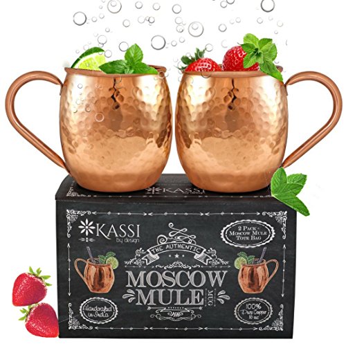 -. Title : KASSI Copper Mugs For Moscow Mule, Gift Set of 2 - 16 oz Handcrafted 100% Pure Unlined Solid Hammered Finish For Cocktails & Cold Drinks. The Cups come w/ a Tote Bag for Gift Giving & Free eBook