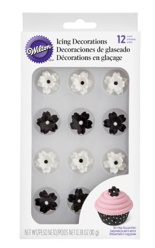 Wilton 710-2219 Layered Flowers Icing Decoration, Black/White, 12/Pack