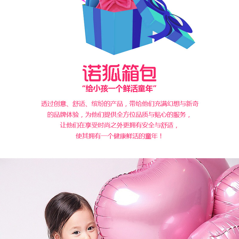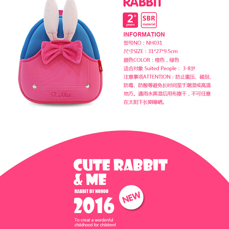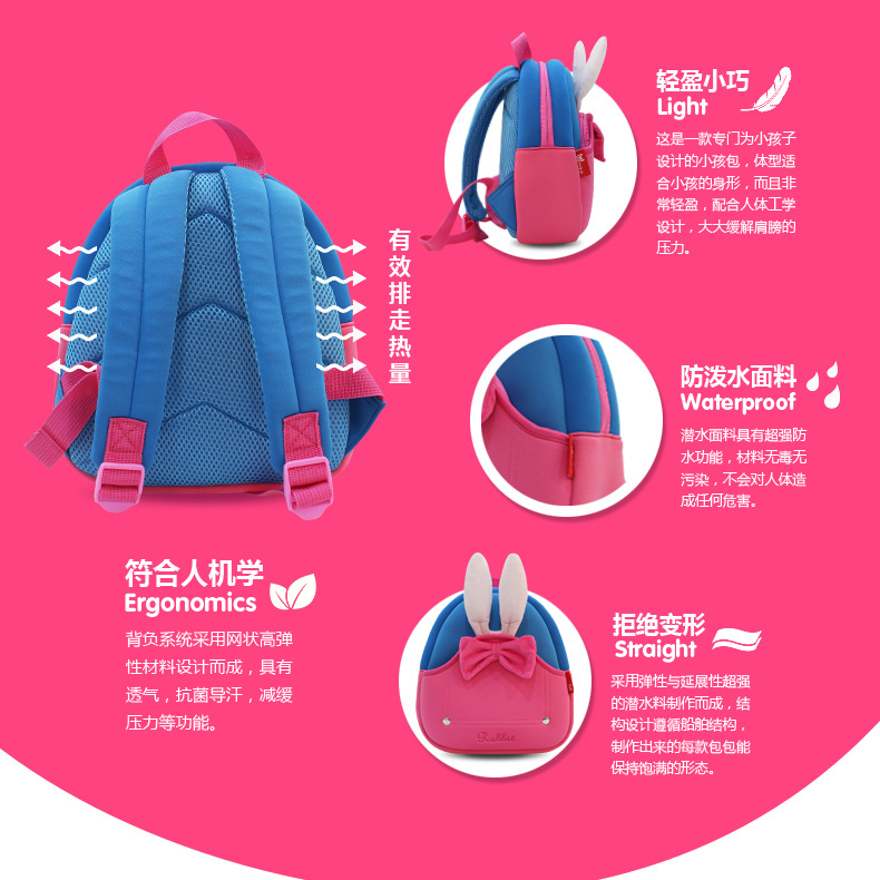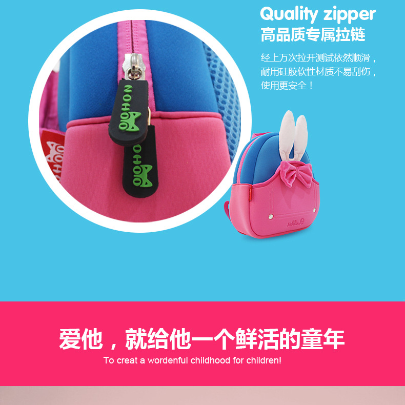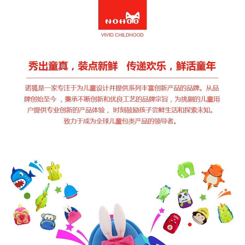 诺狐采用独特的Neoprene潜水料,有别于一般材质,潜水料具有良好的柔软性与弹性,防水防潮,质地轻盈等特点,有适用于专业潜水衣及各种运动领域,其立体塑形极具个性的特性更风靡时尚圈。诺狐童包独特的设计与良好的材质有别于一般的儿童包,立体结构剪裁,鲜艳大胆的配色,打材料的特性发挥到淋漓尽致,为我们的用户提供缤纷、舒适、健康的产品体验。