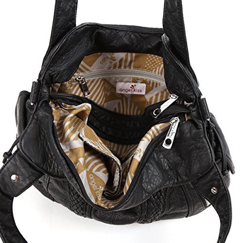 -. Title : Angelkiss 2 Top Zippers Closure Multiple Pockets Purses and Handbags Soft Leather Shoulder bags Women 1555
