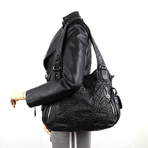 -. Feature : High quality washed PU leather,super soft leather,comfortable,light weight. / Front V shaped hand woven decorative leather tape,top grade design,fashion style. / 2 different adjustable shoulder strap,this bag can be a handbag,Shoulder bag.Free to change in different scenes.Match your multiple request. / 2 zippers closure,make the purse 2 separated rooms,convenient for different articles.Keep bags good shape. / Big size,large capacity.