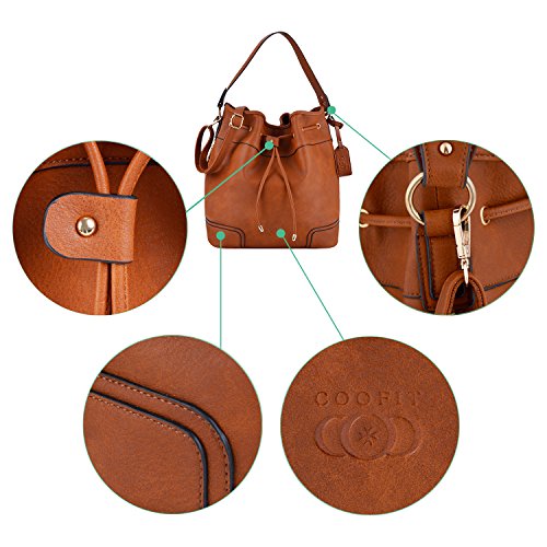 -. Title : Coofit Drawstring Handbag Bucket Bag Leather Crossbody Bag Original Design Shoulder Bag Handbag for women