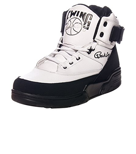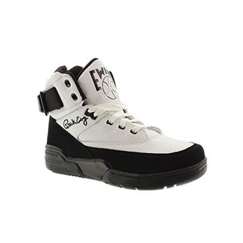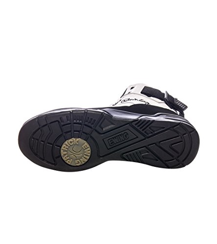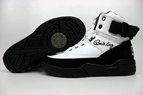 Binding : Apparel Product Description The flagship Ewing Athletics shoe, the 33 HI is an exact retro of the 1990 original, and features a classic reversible ankle strap that can be worn on the front or back of the shoe, and a full length PU midsole for cushioning. This limited edition colorway features a premium tumbled White leather upper along with rich Black nubuck with Silver details for a fresh Summertime feel. 0