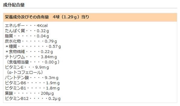 | 原材料 | 酵母抽出物、穀物麹(大麦麹、粟麹、ひえ麹、きび麹、タカキビ麹、紫黒米麹、米麹)、コーンスターチ、L-カルニチンL-酒石酸塩、難消化性デキストリン、ビタミンE含有植物油、乳酸菌/HPMC、結晶セルロース、酸化防止剤(γ-オリザノール)、ショ糖脂肪酸エステル、パントテン酸カルシウム、着色料(酸化チタン、赤102、黄5)、ビタミンB1、ビタミンB6、ビタミンB12、葉酸 |