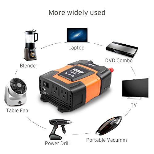 Upgrade 750W power inverter: Dual AC outlets and 3.1 USB ports is the quick charge version for cellphones, computers, GPS units, TV, battery chargers, camping equipment and other electronic devices