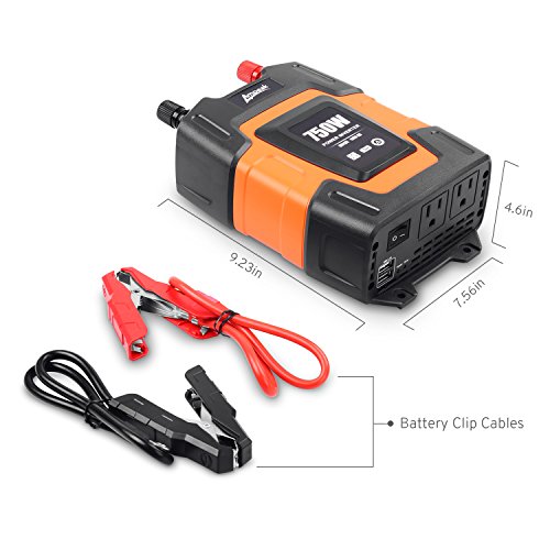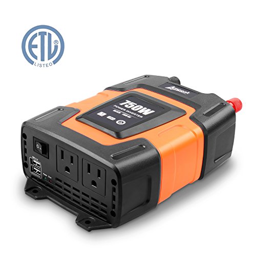 Ampeak 750W Power Inverter DC 12V to 110V AC Car Charger with Dual USB (3.1A shared) 2 AC Outlets Converter