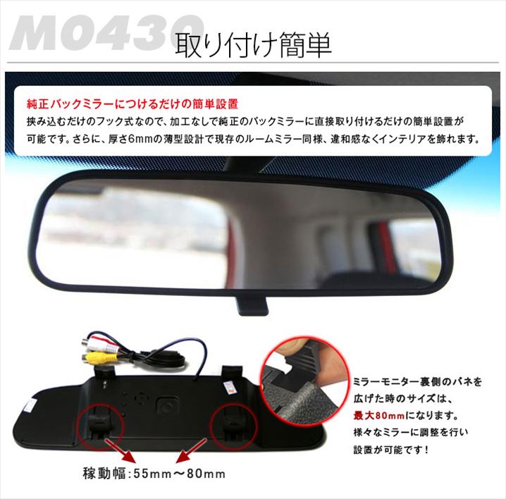 ●純正バックミラーに取り付けるだけで簡単に設置できます。