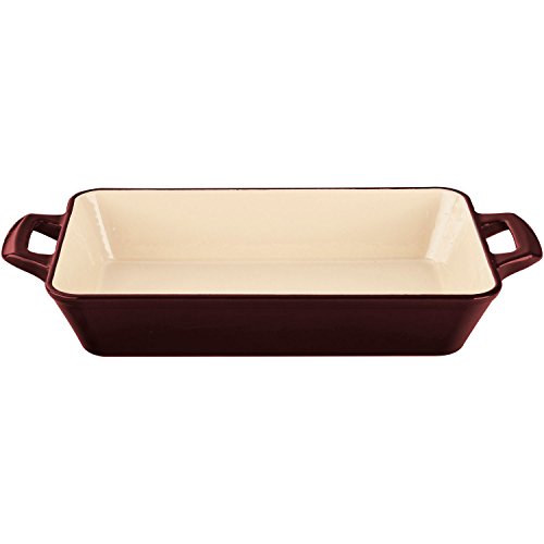 La Cuisine's LC 8485 Large Deep Cast Iron Roasting Pan, in cream, is great for all types of meat, vegetable and fish dishes as well as lasagnas, moussakas and pot pies. Excellent heat retention allows food to heat through evenly and the sure-grip, wide-angle wedge handles provide comfort and stability during transport from oven to table. La Cuisine's cast iron cookware is crafted using sand molds, which are used only once, forging a lighter product with a very fine enamel finish that is truly unique. Wonderfully versatile, La Cuisine's deep roasting pans are suited to the oven and all stovetops, including induction. The non-toxic cream enamel interior surface gives excellent food release that improves through continued use, and is simple to clean - just wash in warm water.Feature