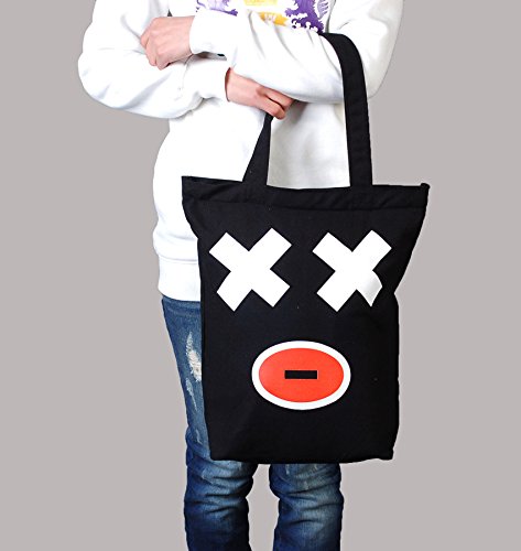 Cute Canvas Tote Bag (Black) for Women Teen Girls - Has Top Zipper