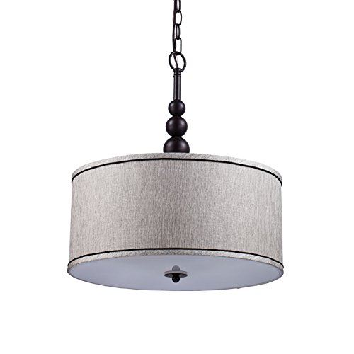 Oiled bronze finish with linen fabric drum shade, glass diffuser