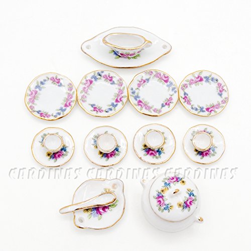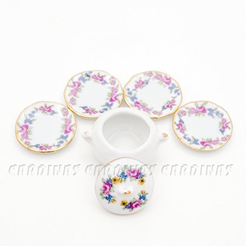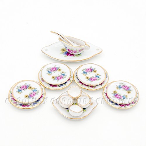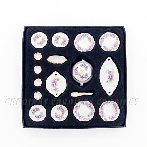 -. Title : Odoria 1:12 Miniature 18PCS Porcelain Tableware Pink Rose Dollhouse Kitchen Accessories